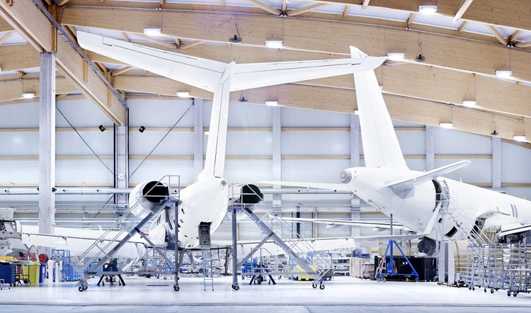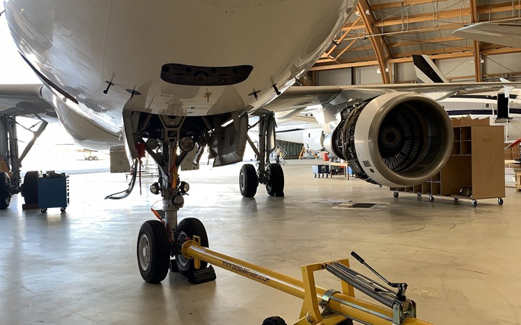 Maintenance checks on two Gulfstream aircraft in Basel, Switzerland