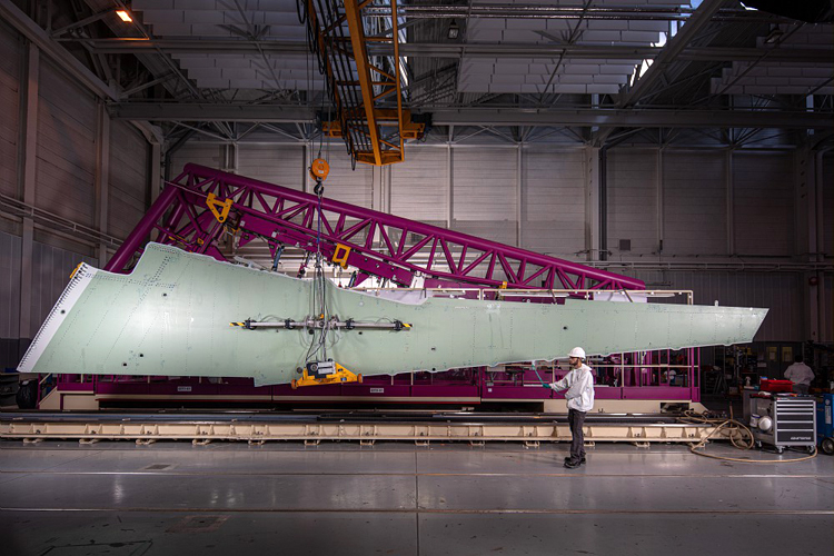 The front, main and rear fuselage sections of the first aircraft are now complete and are scheduled to be assembled at Dassault's factory in Biarritz, France later this month. The wing, currently being assembled in nearby Martignas, is due to be joined to the fuselage at Dassault's Bordeaux-Mérignac facility early next year.