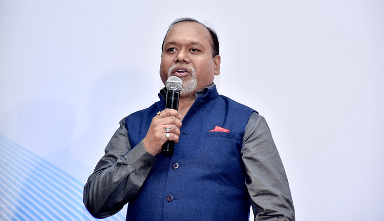 Jayant Baranwal, Publisher and Editor-in-Chief of SP Guide Publications, greets Minister of State for Civil Aviation Jayant Sinha. Managing Director, BAOA, Group Captain R.K. Bali (Retd), is also seen on the dias.