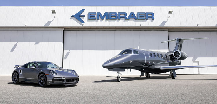 Embraer and Porsche have collaborated to create ‘Duet’, a limitededition, limited-quantity Embraer Phenom 300E aircraft and Porsche 911 Turbo S car pairing. Both known for world-class engineering, performance, and design, Embraer and Porsche will produce just ten pairs of business jets and sports cars, providing a truly seamless experience from road to sky, for the first time in history.