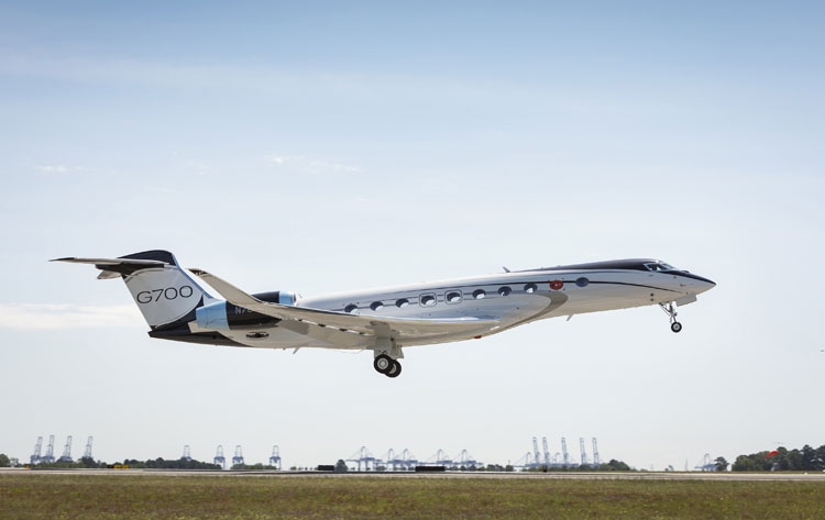 The second G700 flight-test aircraft had its first voyage on March 20, departing Savannah/Hilton Head International Airport (SAV) and flying for 2 hours and 58 minutes. The aircraft reached an altitude of 45,000 feet/13,716 meters and a speed of Mach 0.85. Also departing from SAV, the third flight-test aircraft flew for the first time, soaring over Savannah for 3 hours and 2 minutes. It also reached an altitude of 45,000 ft/13,716 m and a speed of Mach 0.85.