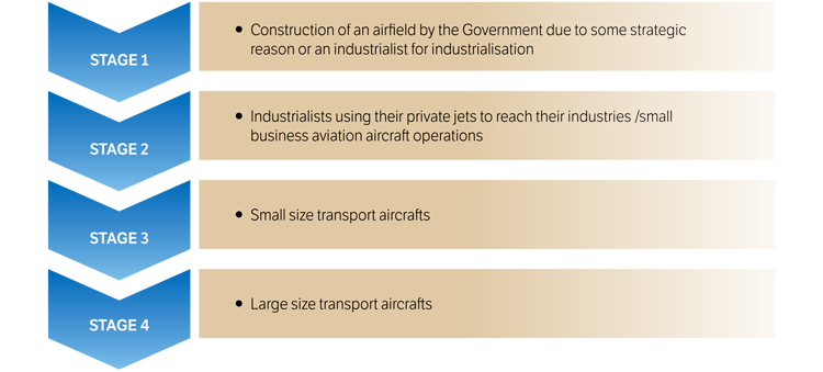 Please refer my article entitled, ‘Raigarh - A Case Study on How Business Aviation Promoted Growth in India’, ICAO Journal, 2017, Pg 23. Now read this story keeping in mind, the Government’s UDAN scheme. UDAN aimed at providing air transport accessible to the Aam Naagrik in small cities and at locations which were yet not served by scheduled airlines. In each of these small town airfields, the life-cycle of passenger traffic operations invariably goes through the following stages.