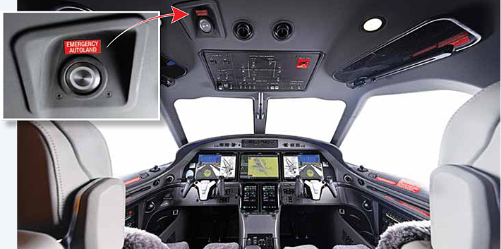 Autoland activates automatically if the system detects the pilot is unable to control the aircraft. Passengers can also press an activation button. During navigation to the nearest suitable airport, Autoland avoids dangerous terrain, obstacles, and adverse weather. It selects the optimal runway, performs the landing, and brings the aircraft safely to a stop, ready for emergency services. This makes the PC-12 PRO the safest version ever produced.
