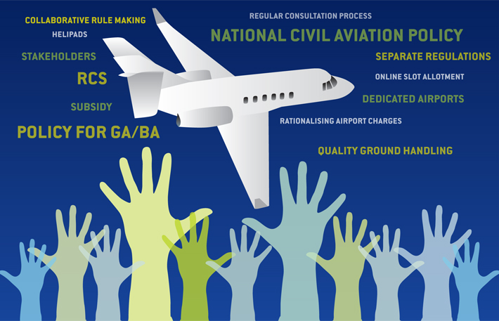 - Ease of Doing Business: Single-window concepts, time-bound monitored clearance from regulators, digital processing of clearances are some of the measures that will promote ease of doing business. Ease of doing business must also extend to all other civil aviation offices and ministries engaged in the operation of the aviation industry.