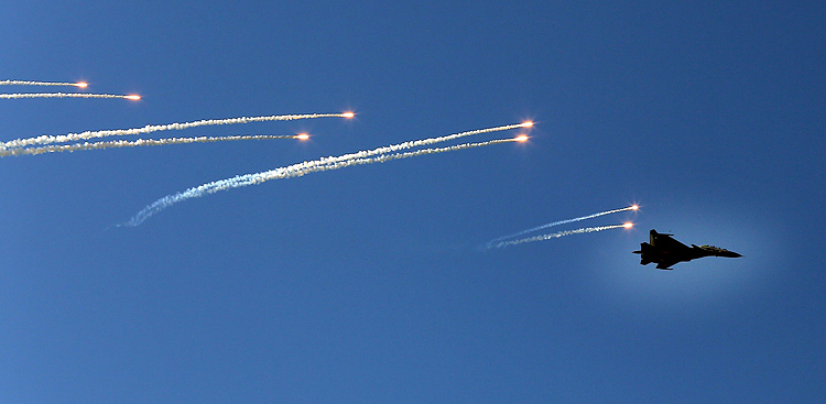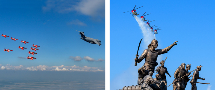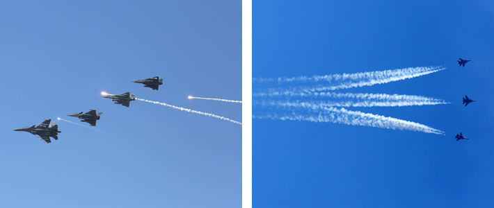 The flying display encapsulated this year's theme for the celebrations: "Infallible Impervious and Precise" — "अचूक, अभेद्य व सटीक"