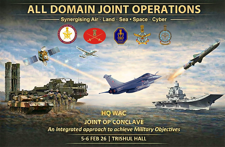 Headquarters Western Air Command successfully conducted a high-level Joint Operations Conclave on February 5-6, 2026 under All Domain Joint Operations (ADJO) Exercise 2026 Framework. The conclave was focussed on deepening intra-service and inter-service interactions at the operational level of warfare, with the objective of strengthening joint operational capabilities across the Indian Defence Forces in an increasingly complex multi-domain environment. The deliberations were attended by senior officers representing the Headquarters Integrated Defence Staff (IDS), Indian Army, Indian Navy, Defence Space Agency (DSA) and Defence Intelligence Agency (DIA) alongside senior leadership from the Indian Air Force.