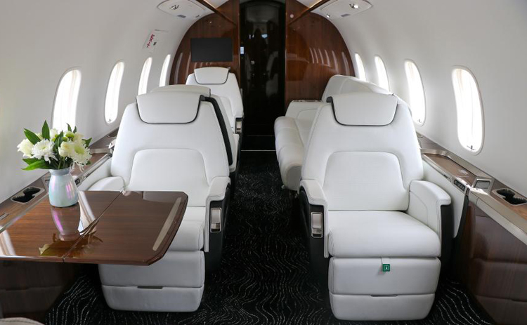 Inside the aircraft, Duncan Aviation's Design team delivered a full interior refurbishment, preserving only the existing woodwork. The rest of the cabin was reimagined with a clean, modern aesthetic that balances light and dark elements.